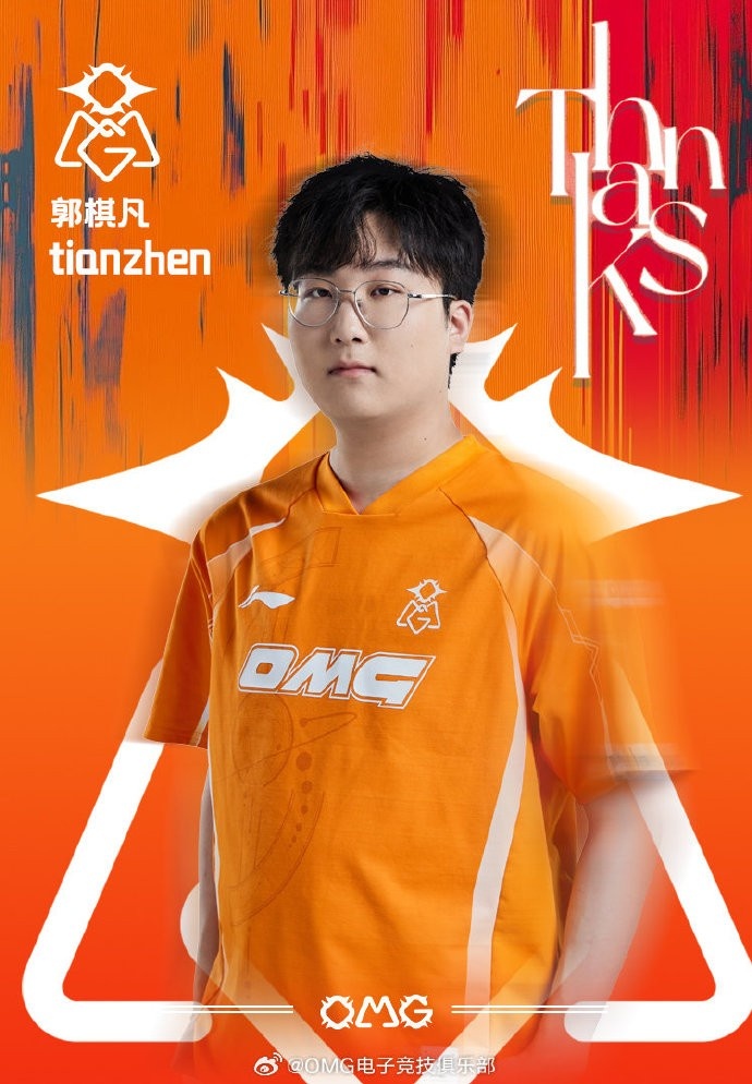 OMG发布人员变动公告:打野选手Tianzhen即日起离队
